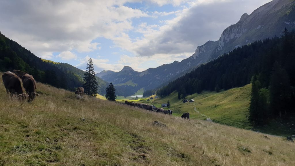 Alpstein 2023 Day 2: In the background the Bogartenlücke with the very steep climb that we have ahead of us